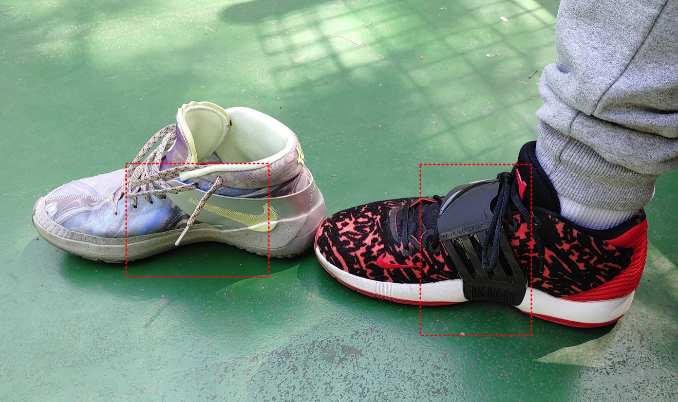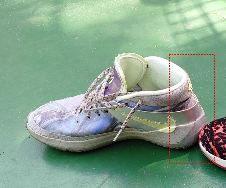 14 - 피팅이 아쉽다. 특히 발목과 뒤꿈치 부분 거기에 디자인이별로, 스트랩 지지하는 느낌은 있으나 경기중 잘 떨어짐