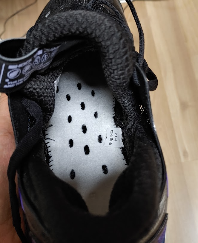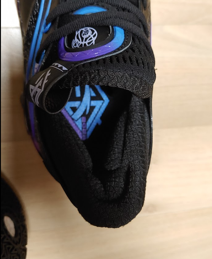 뒷축 지지대 모습, 잘 잡아준다. 힐슬립 단 1도 없다. 이건 중국 브랜드들이 잘 하는 부분이다.