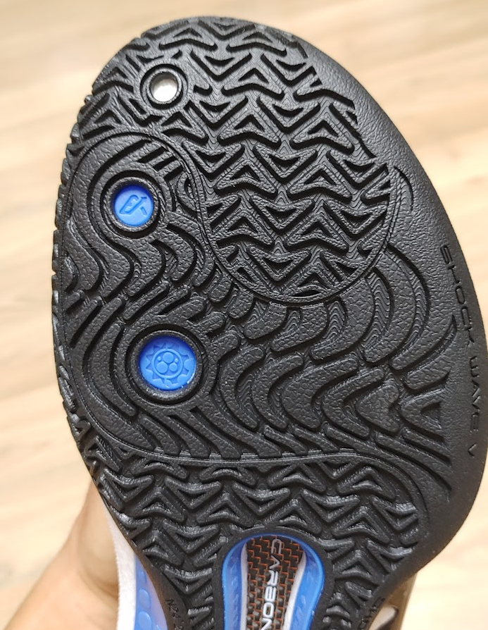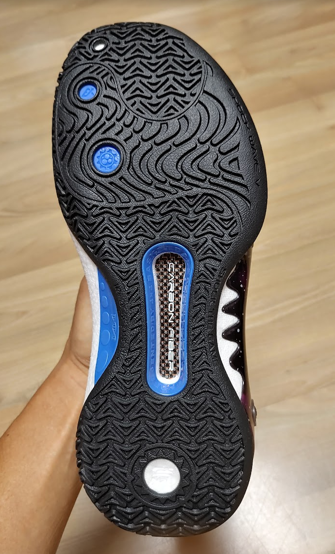 마치 조던 37의 갑피를 보는 듯한 구멍이 숭숭 뚤려있지만 코팅을 잘 해놔서 지지력이 좋다.