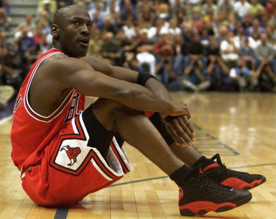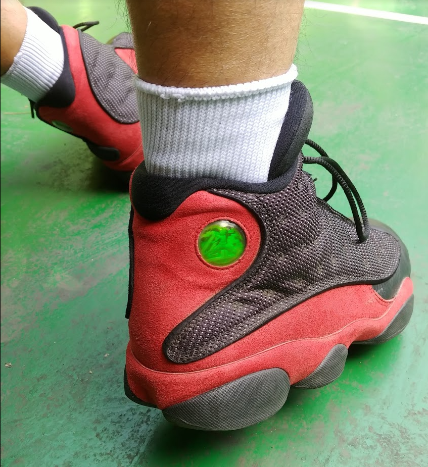 조던 13의 특징은 힐의 녹색 눈깔 홀로그램, 그리고 공룡발바닥 - 그래도 접지는 좋다.