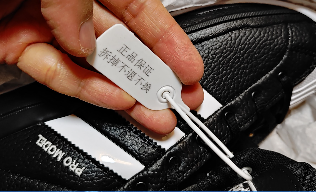 음 정품 택 인데 - 중국에서 구매해서 그런지 플라스틱으로 되어 있다. 가위로 끈어야 한다. 절대 못 뜯어냄