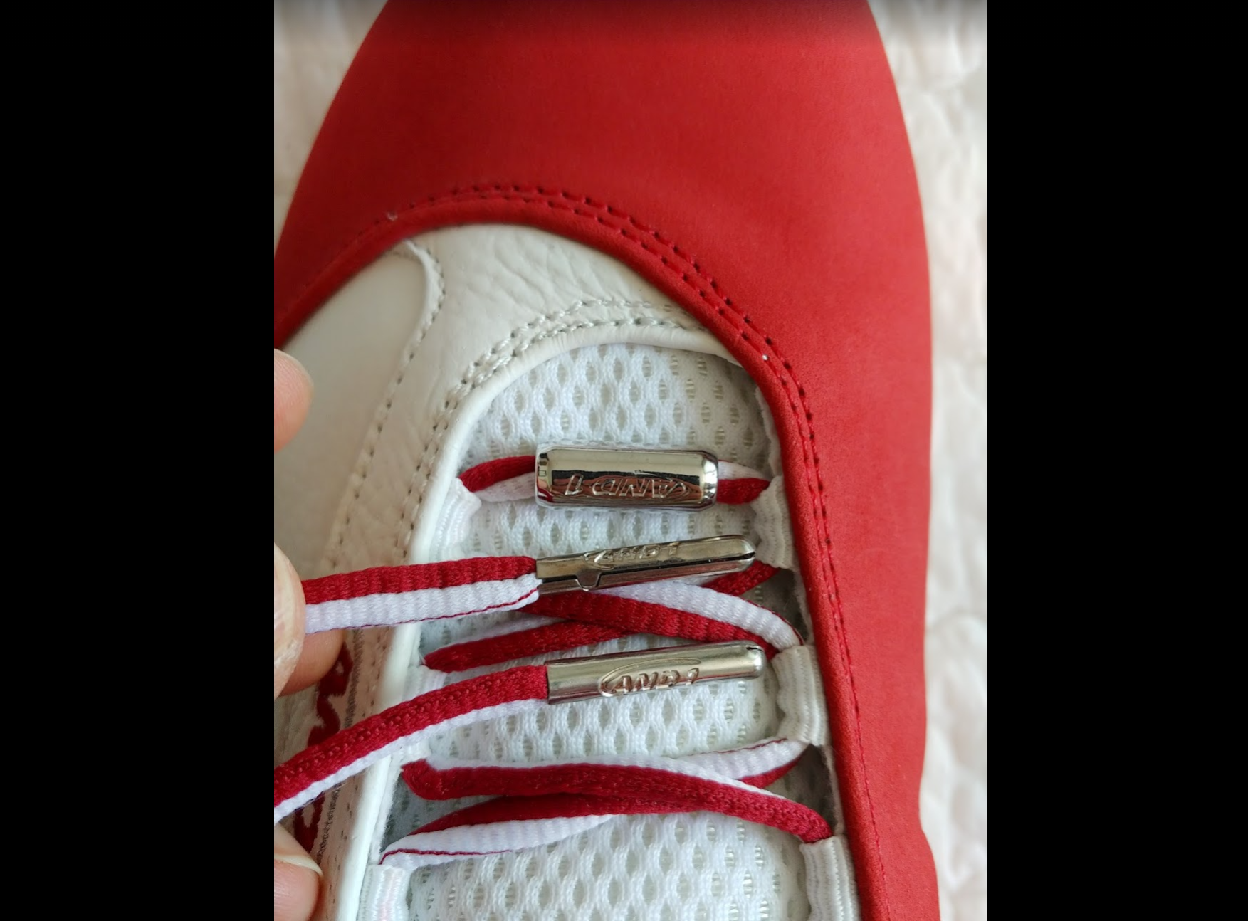 토박스의 빨강 스웨이드 그리고 슈레이스의 흰빨 조합